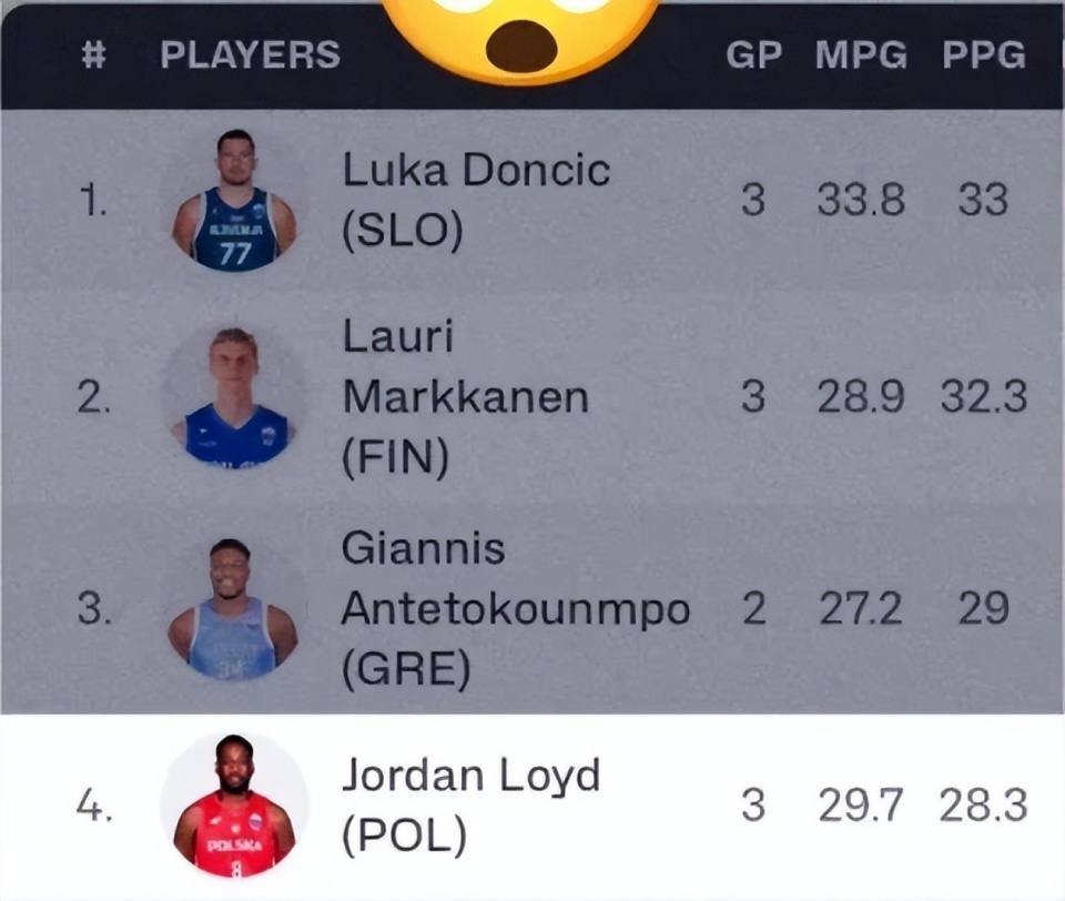 在今年的时候,劳埃德被波兰男篮归化,目前他正代表波兰出战欧锦赛。在三场小组赛中,劳埃德的表现非常出色,甚至力压了众多NBA球星,分别得到了32分、27分、26分,不仅帮助球队击败了东契奇带领的斯洛文尼亚,更是帮助球队取得了三战全胜的战绩,成功锁定一个16强名额。三场比赛下来,劳埃德场均能够得到28.3分,在本届欧锦赛上仅次于东契奇(33分)、马尔卡宁(32.3分)和字母哥(29分),力压约基奇排名在第四位,也是得分榜单前九中唯一的非NBA现役球员。更让人震惊的是,劳埃德的三分球命中率非常高,达到了恐怖的61.9%。